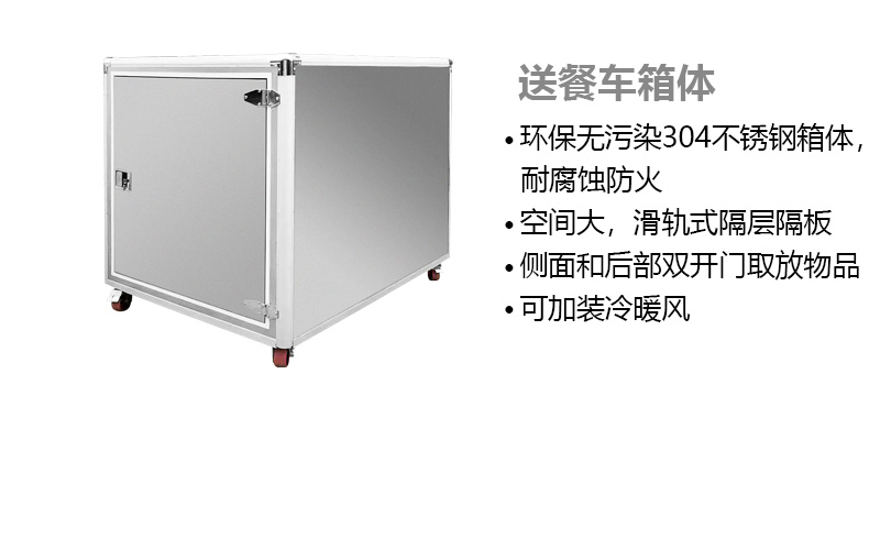 餐車箱體特點:多種箱體材料可以選擇,保溫隔熱的加厚PP板、環保無污染的304不銹鋼材。箱體具有耐腐蝕防火特點??臻g大,滑軌式隔層隔板。 側面和后部雙 開門方便用戶 取放物品。也可根據需要可 加裝冷暖風。