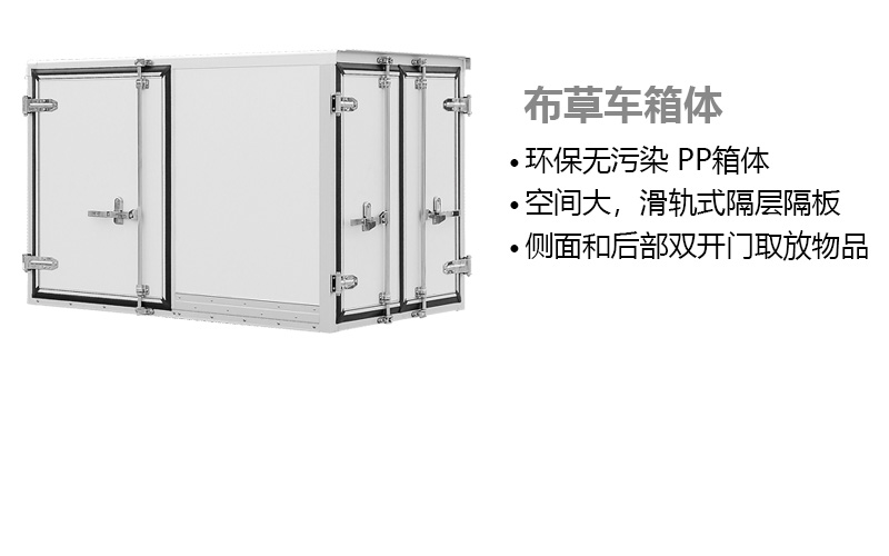 布草車箱體特點:箱體材料采用環保無污染 PP 材料??臻g大,滑軌式隔層隔板。側面和后部雙開門方便用戶取放物品。