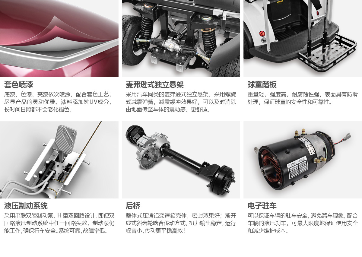 同向四座高爾夫球車(chē),可以供4名球手和2名球童同時(shí)駕乘,也可以供3名球手和3名球童同時(shí)駕乘。